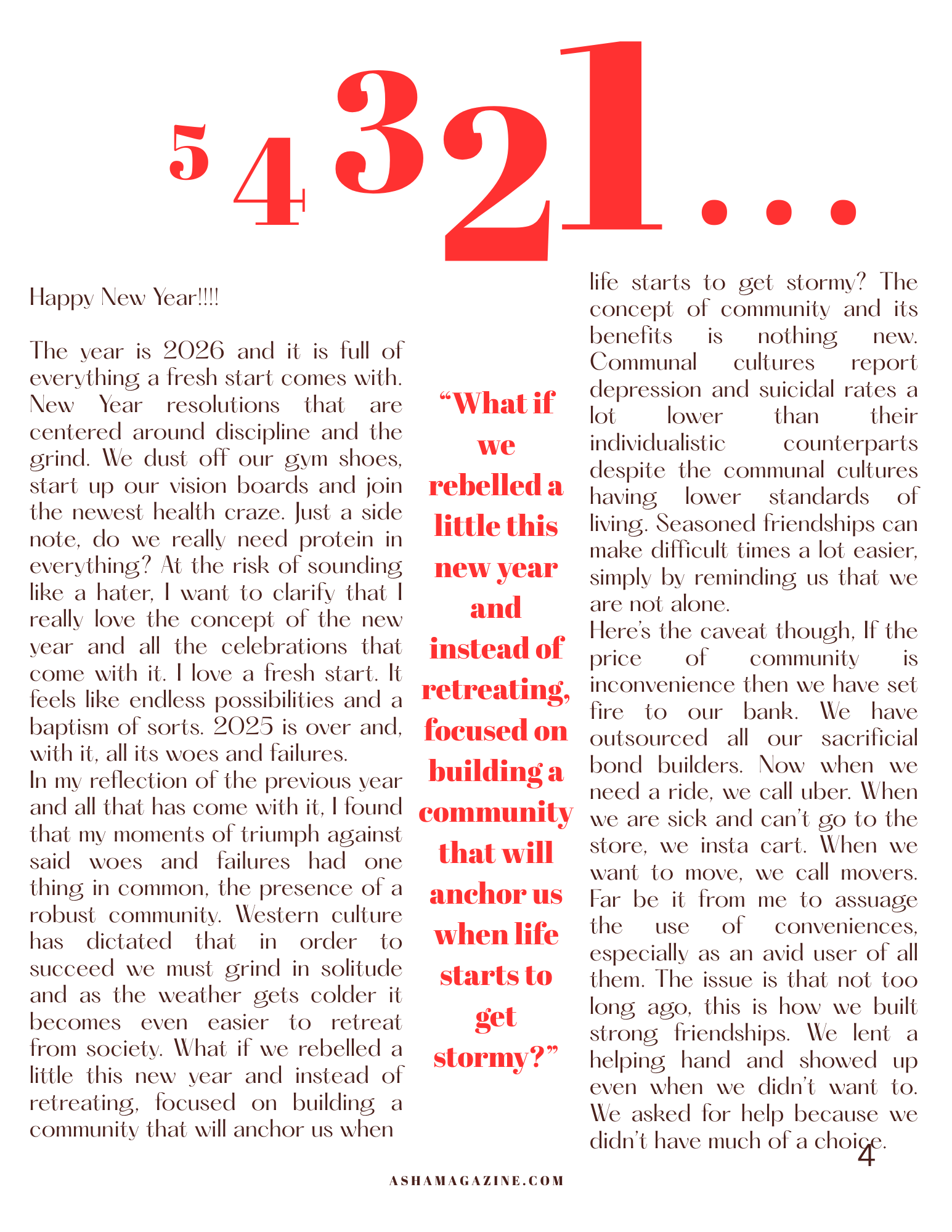 Welcome to Asha Magazine Asha Magazine 16 Jan 2026 — 2 min read 2026: The Year We Learn To Love Who's Already Here